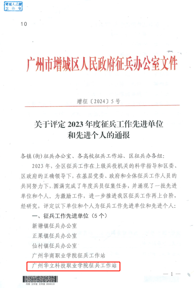 近日,我校征兵工作再次傳來喜訊,經(jīng)過層層評(píng)估,榮獲廣州市增城區(qū)2023年度“征兵工作先進(jìn)單位”稱號(hào),在2月27日的全省征兵工作會(huì)議中,我校大學(xué)生應(yīng)征入伍工作再次受到省教育廳、省征兵辦通報(bào)表揚(yáng),征兵工作得到了上級(jí)部門的充分肯定,這份榮譽(yù)不僅是對(duì)我校征兵工作的肯定,也是對(duì)每一位參與此項(xiàng)工作的師生的認(rèn)可。