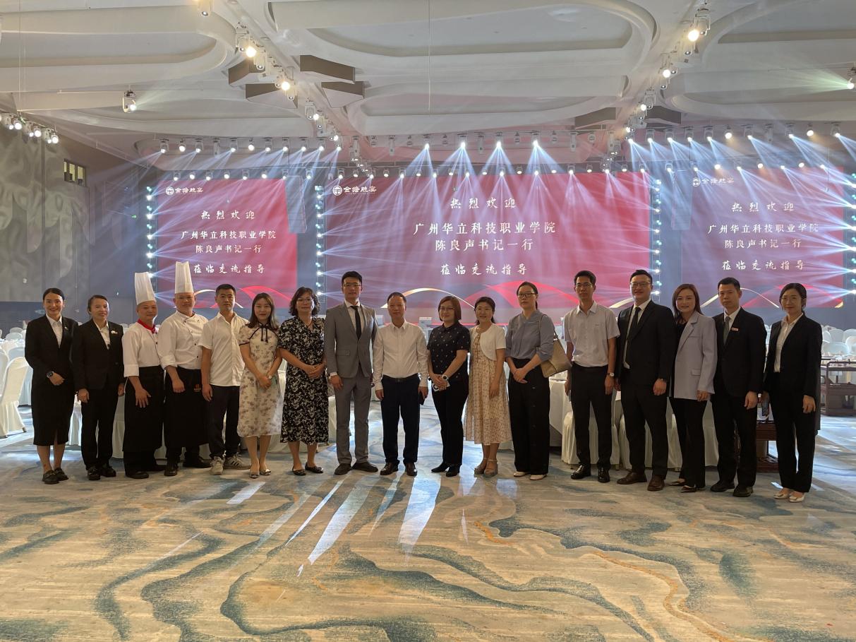 走訪中,陳良聲書記一行在公司總裁林勝軒等企業(yè)高管的陪同下詳細了解了企業(yè)的發(fā)展歷程、企業(yè)文化及公司經營情況,金塘勝宴餐飲集團是一家三十余年高端的一站式婚宴餐飲企業(yè),旗下品牌有多家餐飲、海鮮樓、婚禮藝術中心、新零售中心等,是廣東省較大的綜合性粵菜餐飲集團,可為學生提供眾多的實習和就業(yè)崗位。集團擁有健全的內部人才培養(yǎng)體系及晉升體系,為學生的職業(yè)生涯發(fā)展提供廣闊的成長空間。