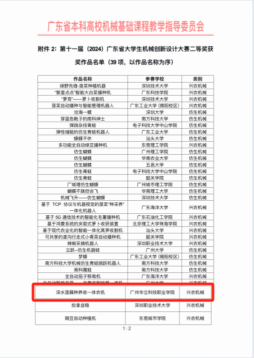 我校參賽團隊在指導老師的精心指導下,賽前認真準備,優(yōu)化設計,模擬改進,積極備戰(zhàn);賽中沉著自信,不畏強手,展現(xiàn)出扎實的專業(yè)知識和技能水平,深受評審專家一致好評。最終,憑借出色參賽表現(xiàn),團隊作品《深水蓮藕種養(yǎng)收一體農機》榮獲省賽二等獎!