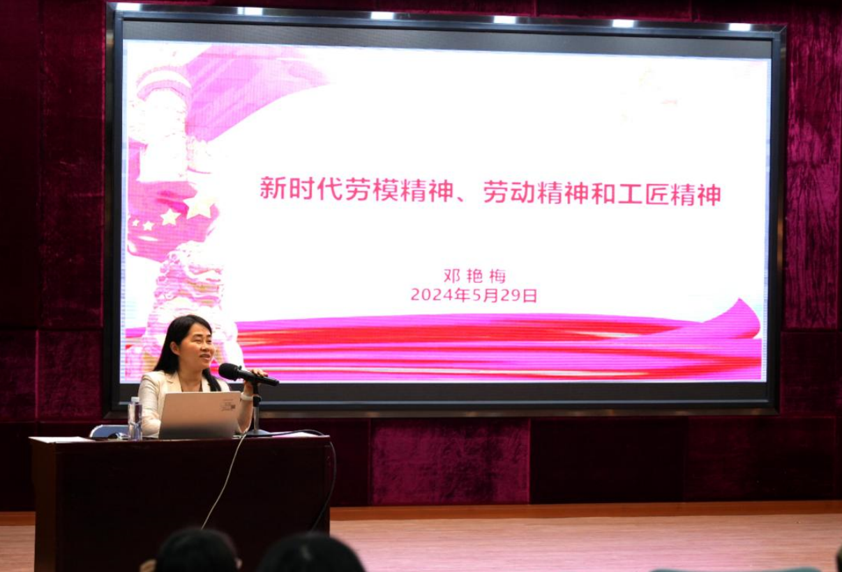 為了大力弘揚“勞動光榮、技能寶貴、創(chuàng)造偉大”的時代風尚,5月29日下午,作為“2024年職業(yè)教育周”系列活動之一,學校特邀“全國勞動模范、南粵工匠”鄧艷梅同志在學校東區(qū)圖書館1號報告廳開展了以“新時代勞模精神、勞動精神、工匠精神”為主題的專題講座。來自全校不同專業(yè)的在校學生代表、勞動教育課任課老師等近300名師生參加了此場講座。