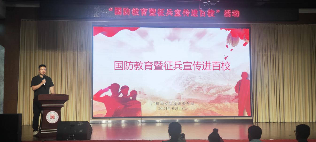 6月18日下午,由增城區(qū)人武部、征兵辦等部門聯(lián)合我校組織“國防教育暨征兵宣傳進百?!毙v活動,活動在我校圖書館8樓進行,旨在提高學(xué)生的國防意識和參軍意愿。出席活動的有區(qū)人武部政治委員唐華、區(qū)人武部政治工作科科長王敏城、區(qū)征兵辦林豪、區(qū)征兵趙妙君、區(qū)教育局顧鉆均、區(qū)委宣傳部鄒金科、區(qū)退役軍人事務(wù)局易翔、區(qū)衛(wèi)建局李進、區(qū)公安局邱永昌、王洪艷副校長、陳勝軍處長、各二級學(xué)院學(xué)管主任、輔導(dǎo)員和學(xué)生代表。