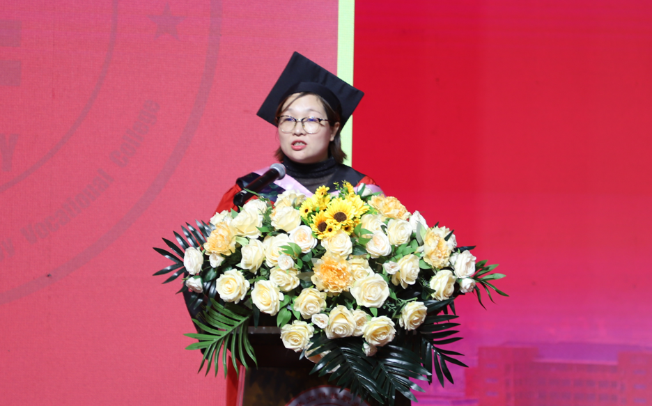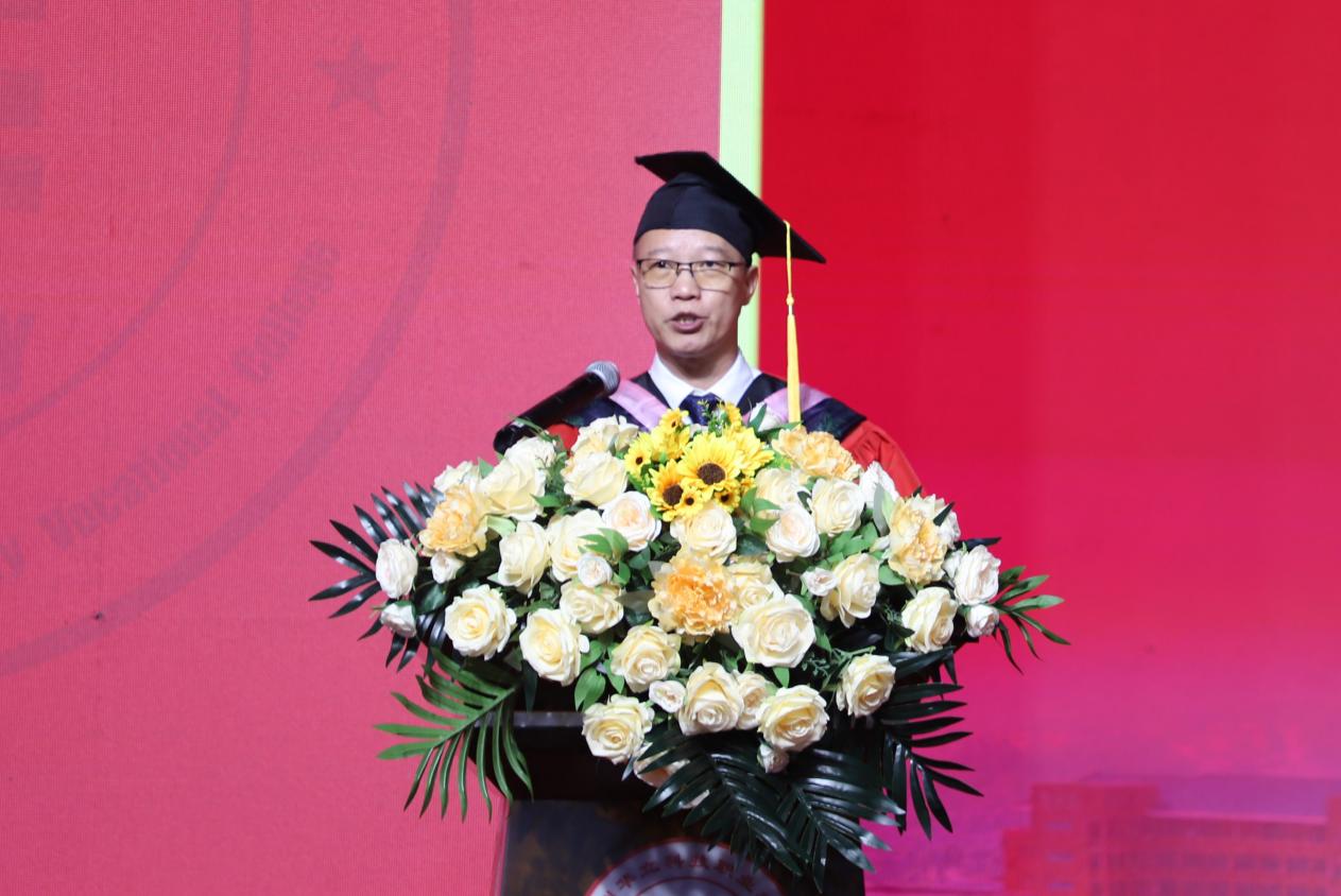 典禮上,易健民校長(zhǎng)用情真意切的致辭表達(dá)了對(duì)2024屆畢業(yè)生的熱烈祝賀和深情祝福。在即將離開校園,開啟嶄新的人生之旅之際,易校長(zhǎng)對(duì)畢業(yè)生提出了三點(diǎn)希望,一是要明確新的航向,實(shí)現(xiàn)自我價(jià)值。踏進(jìn)社會(huì)后,站在新的起點(diǎn),要主動(dòng)將個(gè)人理想融入國(guó)家發(fā)展藍(lán)圖,同頻共振,同聲相應(yīng),爭(zhēng)做“有理想、敢擔(dān)當(dāng)、能吃苦、肯奮斗”的時(shí)代好青年,實(shí)現(xiàn)自我價(jià)值。二是要繼續(xù)學(xué)習(xí),堅(jiān)持終身學(xué)習(xí)。學(xué)習(xí)專業(yè)技術(shù)知識(shí),打牢理論基礎(chǔ);學(xué)習(xí)為人處世,正確面對(duì)順境與困難,妥善處理人際關(guān)系;學(xué)習(xí)傳統(tǒng)文化,提高人文素養(yǎng),豐富精神世界。三是要勇于實(shí)踐,繼續(xù)提升技能。在今后的職業(yè)生涯中,要立志做新時(shí)代的大國(guó)工匠、勞動(dòng)模范,立足本職、愛崗敬業(yè)、勇于實(shí)踐、勤學(xué)苦練,虛心向能工巧匠學(xué)習(xí),掌握技術(shù)要領(lǐng),傳承“秘籍”“竅門”。期待畢業(yè)生們勇敢的放飛青春的夢(mèng)想,在新征途上展翅高飛。
