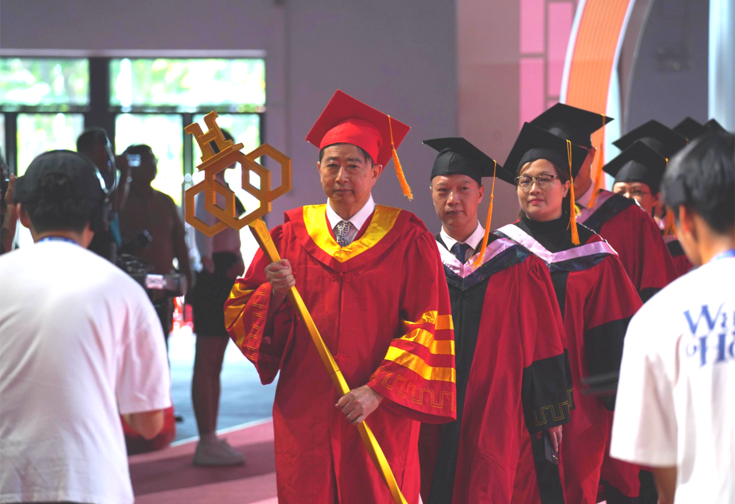 全體在校領(lǐng)導(dǎo),各二級(jí)學(xué)院及職能處室負(fù)責(zé)人、教師代表、畢業(yè)班輔導(dǎo)員、校友代表及2024屆畢業(yè)生出席了畢業(yè)典禮。典禮由常務(wù)副校長(zhǎng)馬俊主持。