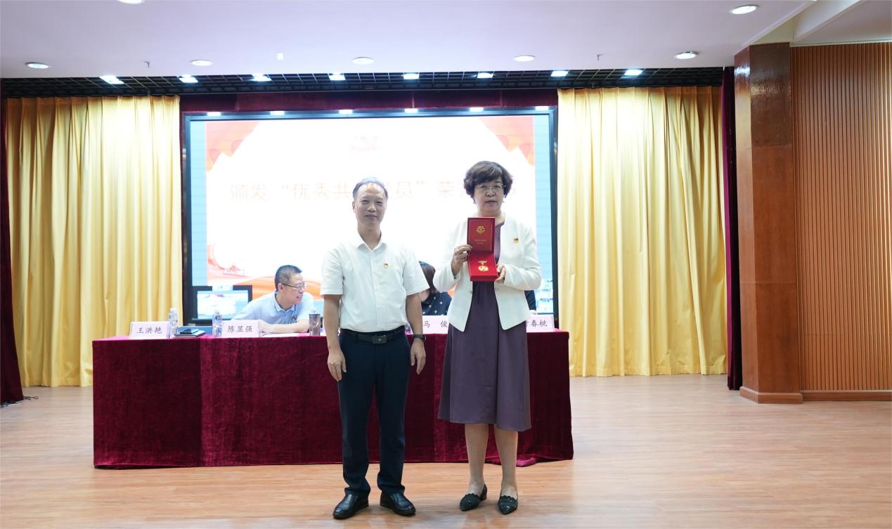 陳良聲、馬俊、陳顯強、高堯來、王洪艷、葉春桃、張劍鋒分別為受表彰的優(yōu)秀共產(chǎn)黨員、優(yōu)秀黨務(wù)工作者、先進基層黨組織和“光榮在黨50年”紀念章獲得者頒發(fā)榮譽證書、牌匾。