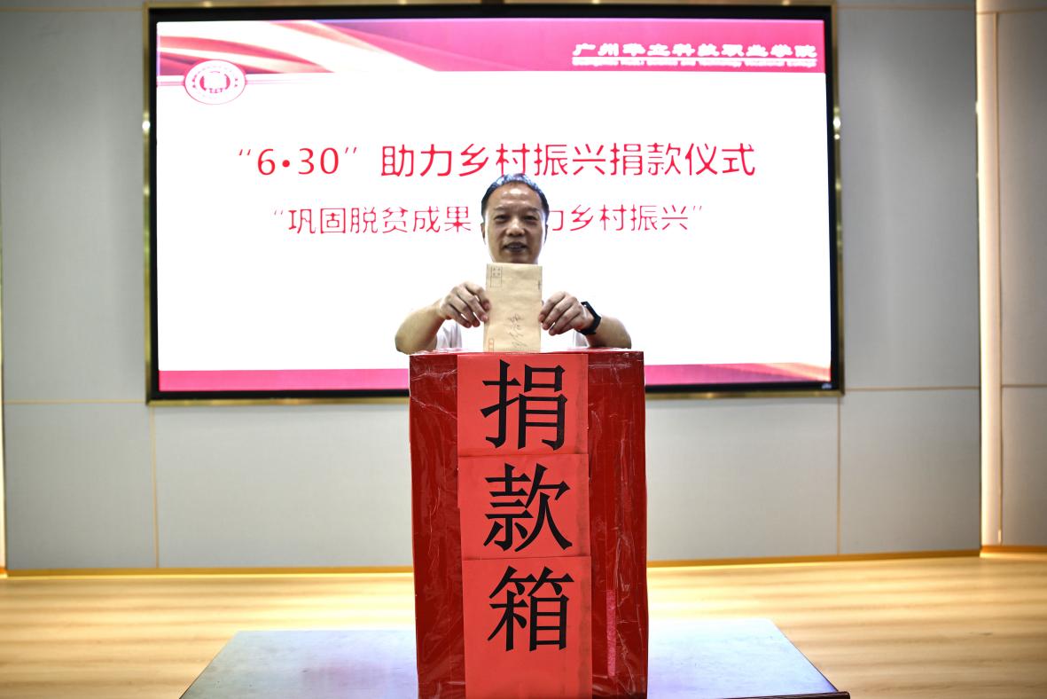 為進一步弘揚中華民族扶貧濟困、樂善好施的傳統(tǒng)美德,根據(jù)《廣東省2024年“6·30”助力鄉(xiāng)村振興活動工作方案》文件精神,6月28日上午,學(xué)校工會舉行了“6·30”助力鄉(xiāng)村振興愛心捐款活動。學(xué)校領(lǐng)導(dǎo)班子成員、教師代表、學(xué)生代表參加了捐款儀式。捐款儀式由工會主席、常務(wù)副校長馬俊主持。