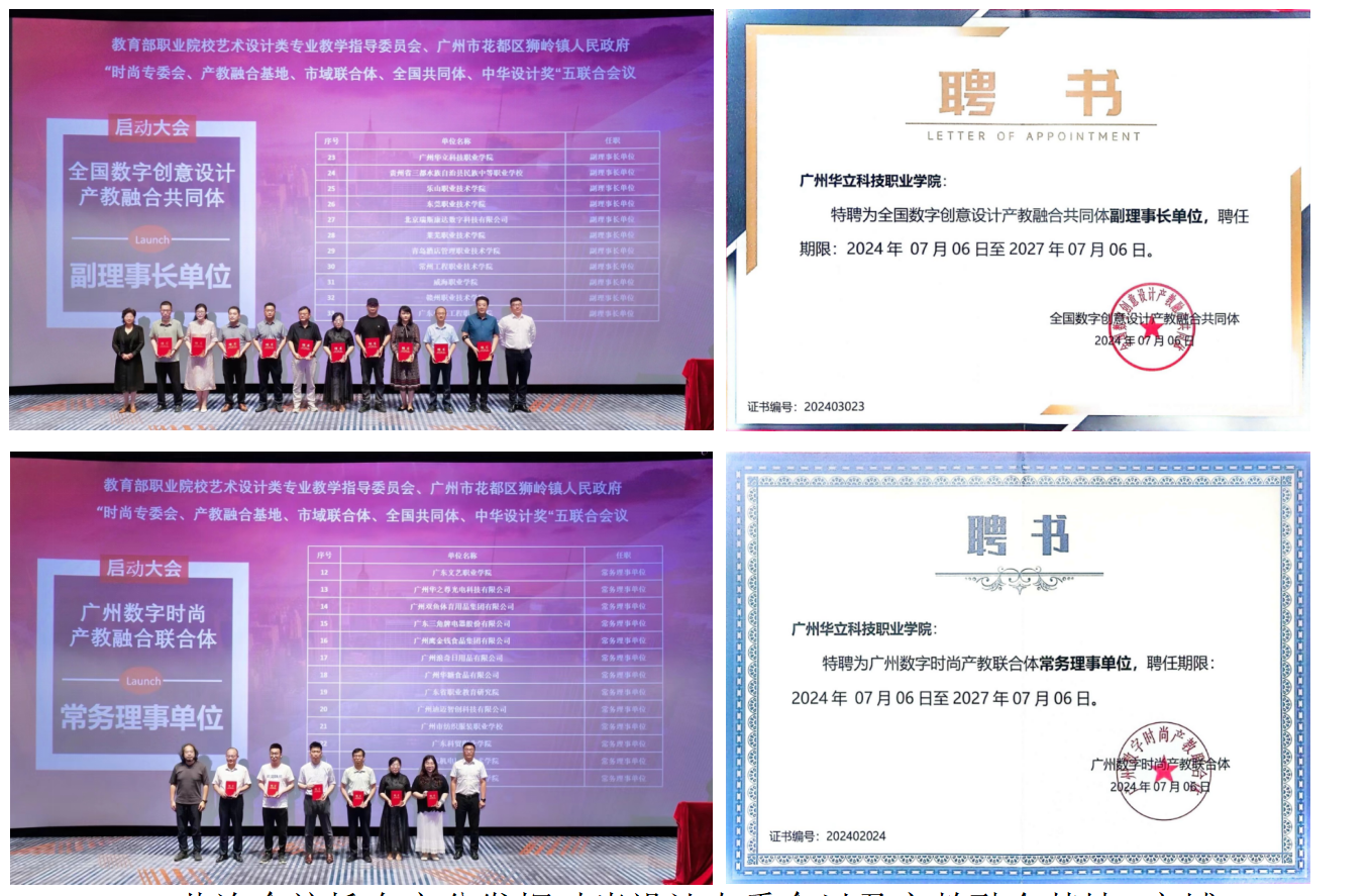 我校被聘任為“全國數(shù)字創(chuàng)意設(shè)計(jì)產(chǎn)教融合共同體副理事長(zhǎng)單位”“廣州數(shù)字時(shí)尚產(chǎn)教聯(lián)合體常務(wù)理事單位”。
