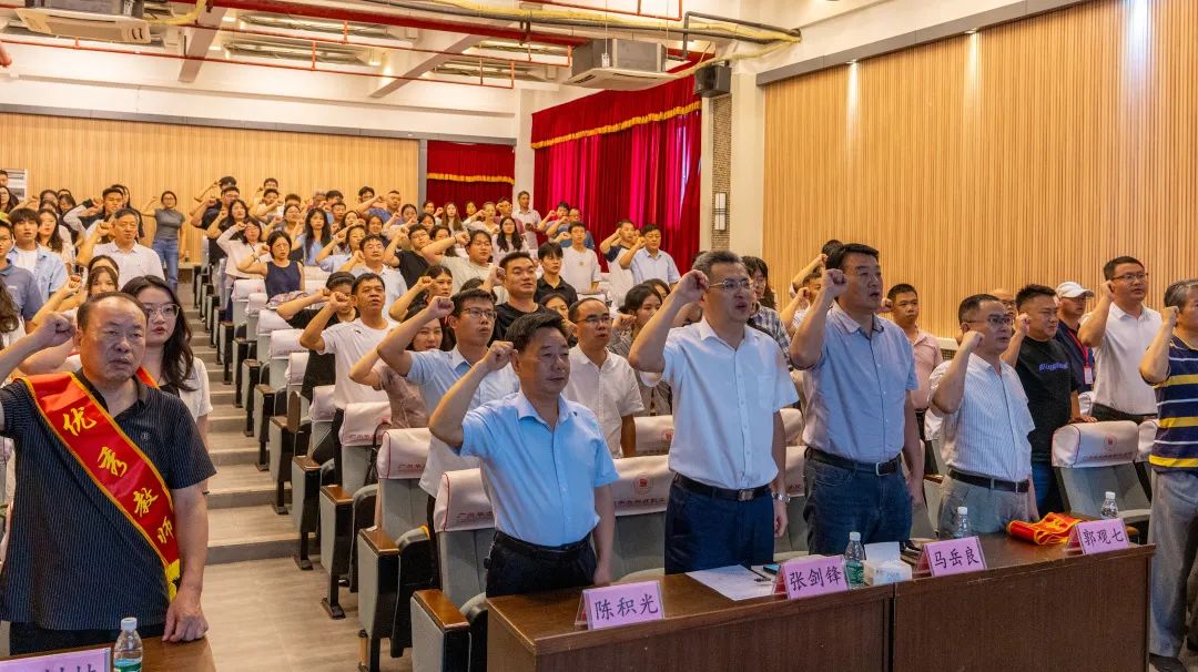 誓言鏗鏘,堅定有力,回聲悠揚,銘感不忘。大會還舉行了教師宣誓儀式。一聲聲鏗鏘有力的誓言,表達了教師們投身教育事業(yè)的決心與信心,勾勒出華立人躬耕教壇、矢志奮斗的精彩畫像。