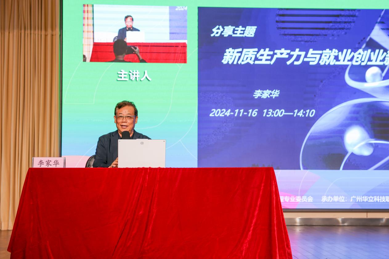 中國(guó)青年政治學(xué)院原副院長(zhǎng)李家華教授帶來(lái)了《新質(zhì)生產(chǎn)力與就業(yè)創(chuàng)業(yè)新路徑》的主題演講。他深入探討了新質(zhì)生產(chǎn)力與高校就創(chuàng)育人的內(nèi)聯(lián),以及新質(zhì)生產(chǎn)力如何賦能就創(chuàng)育人路徑。李家華教授強(qiáng)調(diào),新質(zhì)生產(chǎn)力對(duì)職業(yè)教育領(lǐng)域帶來(lái)了全新的要求與嚴(yán)峻挑戰(zhàn),我們需要厘清“新質(zhì)人才”內(nèi)涵、提升“新質(zhì)學(xué)習(xí)力”、構(gòu)建“新質(zhì)育人生態(tài)”、擁抱“新就業(yè)形態(tài)”、聚焦“新質(zhì)產(chǎn)業(yè)集群”、嵌入“新質(zhì)創(chuàng)業(yè)芯片”構(gòu)建新質(zhì)教學(xué)場(chǎng)景等一系列新質(zhì)力量驅(qū)動(dòng)職業(yè)教育發(fā)展的策略與途徑,為大家拓寬了視野,激發(fā)了新的思考維度。
