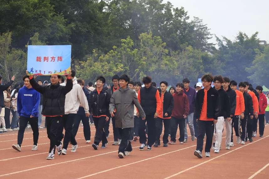 主持人介紹完出席開幕式的領(lǐng)導(dǎo)嘉賓后,伴隨著激昂的進(jìn)行曲,運動員和裁判員方陣依次入場。他們步伐堅定、精神飽滿,充分展現(xiàn)了華立學(xué)子昂揚向上的精神風(fēng)貌和積極進(jìn)取的競技態(tài)度。各學(xué)院方陣精心策劃了入場儀式,旨在展現(xiàn)各自學(xué)院獨特的精神風(fēng)貌與文化底蘊,同時也表現(xiàn)了對本次運動會的深切重視與積極參與?,F(xiàn)場觀眾被各學(xué)院方陣的創(chuàng)意造型和響亮的口號深深吸引,不時爆發(fā)出熱烈的掌聲。