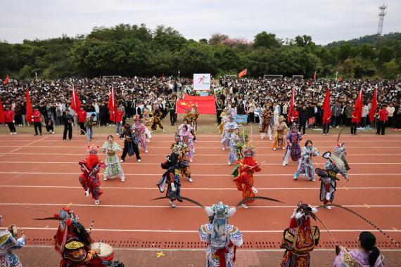 精彩的節(jié)目表演為運動會開幕式增添了一抹亮色。學(xué)生們將傳統(tǒng)體育項目醒獅、英歌舞、武術(shù)與現(xiàn)代運動項目跆拳道、啦啦操等巧妙融合,呈現(xiàn)出一場別開生面的表演。這些表演交相輝映,不僅展現(xiàn)了華立學(xué)子對“傳承與創(chuàng)新”理念的深刻踐行,也彰顯了他們的時代魅力。每一個動作都充滿青春的活力與激情,既體現(xiàn)了他們對體育精神的熱愛與追求,也為運動會現(xiàn)場營造出一種熱烈而濃厚的氛圍。這場盛會因此充滿了生機(jī)與希望,讓在場的每一位觀眾都感受到了體育帶來的正能量和青春的力量。