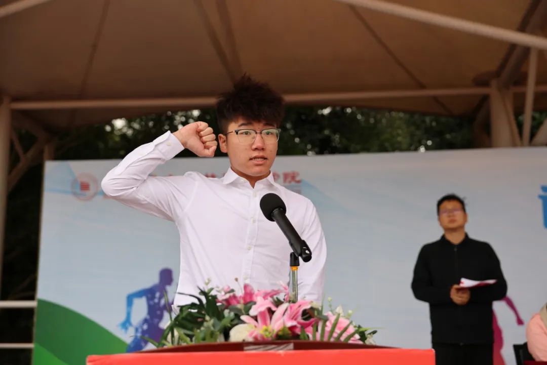 24級體育教育1班的王培森同學(xué)作為運動員代表進(jìn)行宣誓,他表示將嚴(yán)格遵守運動員守則和比賽規(guī)則,尊重對手,服從裁判,以良好的競技狀態(tài)和道德風(fēng)尚參與比賽,增進(jìn)友誼。