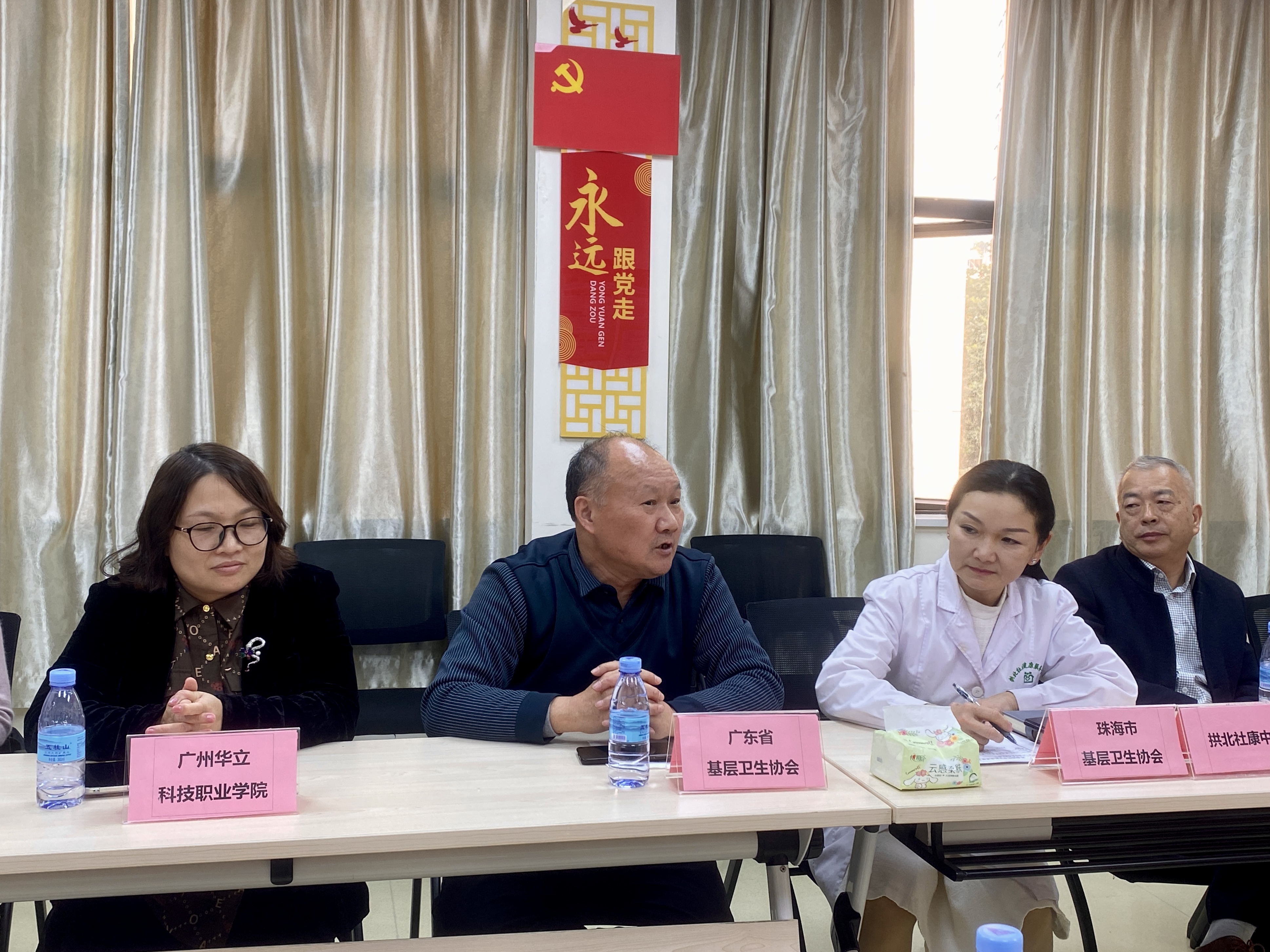 會(huì)議在珠海市中西醫(yī)結(jié)合醫(yī)院拱北社區(qū)健康服務(wù)中心舉辦。會(huì)議上,廣東省基層衛(wèi)生協(xié)會(huì)和珠海市基層衛(wèi)生協(xié)會(huì)的會(huì)長(zhǎng)首先對(duì)來(lái)自珠中地區(qū)的9家社衛(wèi)中心負(fù)責(zé)人及我校到場(chǎng)人員表示熱烈的歡迎。同時(shí)提出,為進(jìn)一步加強(qiáng)廣東省珠中地區(qū)基層醫(yī)衛(wèi)人才的培養(yǎng)與管理,推動(dòng)地區(qū)衛(wèi)生健康事業(yè)的高質(zhì)量發(fā)展,特地舉辦本次機(jī)構(gòu)與高等職業(yè)院校的座談,旨在讓一線的社衛(wèi)中心醫(yī)務(wù)工作人員對(duì)產(chǎn)教融合、學(xué)歷背景提升、持續(xù)進(jìn)修等多方面起到更深的認(rèn)識(shí) ,從而全面提升基層醫(yī)療工作人員的綜合能力。