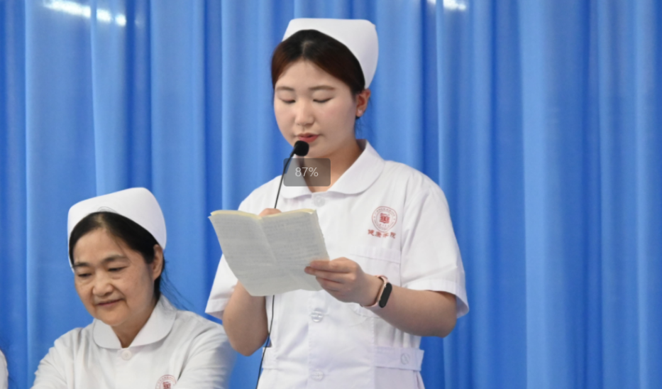 護理專業(yè)學(xué)生肖佳妍作為學(xué)生代表發(fā)言