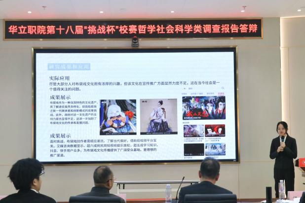 在王繼東、楊瑞光老師共同指導(dǎo)下,陳怡馨、陳芷茵、樊紫清、梁敏嬈同學(xué)完成的《“袖里乾坤大 掌上戲世情”——閩南布袋戲的現(xiàn)代傳承與發(fā)展研究》,立足國(guó)家級(jí)非物質(zhì)文化遺產(chǎn)保護(hù)的時(shí)代課題,聚焦閩南布袋戲這一國(guó)家級(jí)非遺項(xiàng)目的傳承困境與創(chuàng)新路徑。項(xiàng)目提出以青年創(chuàng)作群體為突破口,通過融合現(xiàn)代審美與數(shù)字技術(shù)激活傳統(tǒng)藝術(shù)生命力的創(chuàng)新路徑。經(jīng)實(shí)踐驗(yàn)證,通過打造沉浸式演出場(chǎng)景、開發(fā)文創(chuàng)衍生品、構(gòu)建新媒體傳播矩陣等實(shí)踐,可有效擴(kuò)大受眾覆蓋范圍。該成果既為破解閩南布袋戲現(xiàn)實(shí)困境提供解決方案,更通過守護(hù)文化根脈、增強(qiáng)文化自信提供現(xiàn)實(shí)路徑,彰顯傳統(tǒng)藝術(shù)與時(shí)代同頻共振的傳承價(jià)值。