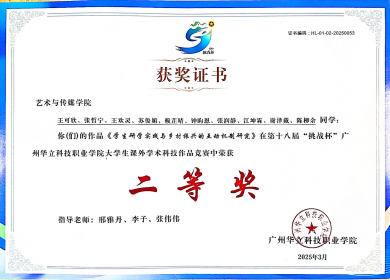 青春筑夢(mèng) 科創(chuàng)領(lǐng)航 |華立職院藝傳師生斬獲“挑戰(zhàn)杯”省賽二等獎(jiǎng)1項(xiàng),三等獎(jiǎng)2項(xiàng)