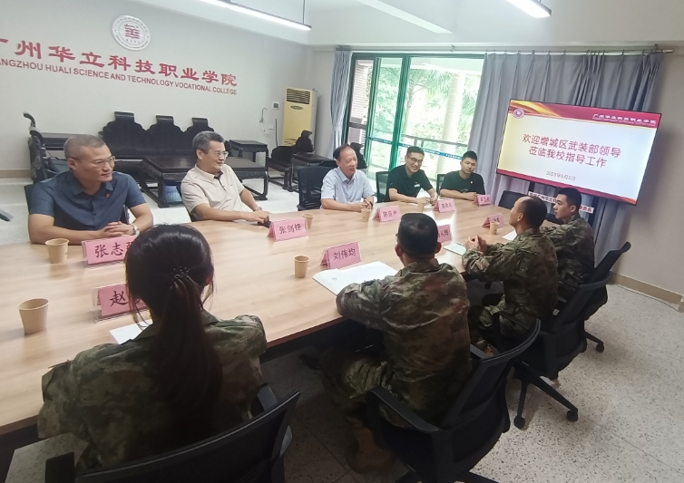 2025年6月5日上午,增城區(qū)武裝部部長楊從輝和軍事科劉偉均參謀一行專程來到廣州華立科技職業(yè)學院廣州校區(qū),深度調研大學生征兵工作開展情況。與我校黨委書記陳良聲、校長助理張劍鋒、黨委武裝部部長陳勝軍進行了深入的交流與指導。