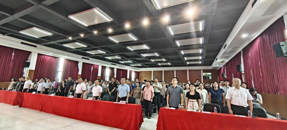大會(huì)在莊嚴(yán)的國(guó)歌聲中拉開(kāi)帷幕,全體教職工肅立齊唱國(guó)歌,激發(fā)出團(tuán)結(jié)奮進(jìn)的強(qiáng)大力量。