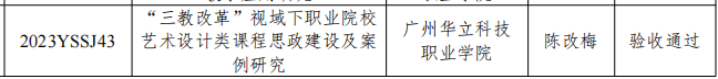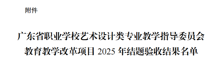 近日,依據(jù)廣東省職業(yè)學(xué)校藝術(shù)設(shè)計類專業(yè)教學(xué)指導(dǎo)委員會發(fā)布的《廣東省職業(yè)學(xué)校藝術(shù)設(shè)計類專業(yè)教學(xué)指導(dǎo)委員會2022-2023年度教育教學(xué)改革項目2025年結(jié)題驗收結(jié)果的通知》(粵職藝術(shù)設(shè)計教指委〔2025〕5號),我校傳來喜訊:由馬俊教授主持的《非遺藝術(shù)價值發(fā)現(xiàn)與服務(wù)大眾相關(guān)問題研究——以廣州欖雕為例》(項目編號:2022YSSJ65)、吳韻怡副教授主持的《數(shù)字化技術(shù)對高職藝術(shù)類專業(yè)學(xué)生在線學(xué)習(xí)效果的影響》(項目編號:2022YSSJ16)、黎映如副教授主持的《基于1+X證書制度的藝術(shù)設(shè)計專業(yè)“崗課賽證”融通的實(shí)踐探索》(項目編號:2022YSSJ72)、陳改梅副教授主持的《“三教改革”視域下職業(yè)院校藝術(shù)設(shè)計類課程思政建設(shè)及案例研究》(項目編號:2023YSSJ43)、鄭黎明副教授主持的《3D打印技術(shù)融入三維動畫設(shè)計課程教學(xué)應(yīng)用研究》(項目編號:2023YSSJ44)、宋依謎副教授主持的《鄉(xiāng)村振興背景下農(nóng)業(yè)與地方文化融合的農(nóng)產(chǎn)品包裝設(shè)計研究》(項目編號:2023YSSJ45)、馬英超副教授主持的《新媒體語境下高職院校“非遺”技藝教學(xué)融入社會服務(wù)的實(shí)踐研究》(項目編號:2023YSSJ46)這7項教育教學(xué)改革項目均圓滿通過結(jié)題驗收。廣州華立科技職業(yè)學(xué)院在此次教改浪潮中斬獲豐碩成果,在數(shù)字化教學(xué)、非遺傳承、產(chǎn)教融合等多個關(guān)鍵領(lǐng)域交出了一份令人眼前一亮的創(chuàng)新答卷,為藝術(shù)設(shè)計類職業(yè)教育的高質(zhì)量發(fā)展注入了源源不斷的強(qiáng)勁動力。
