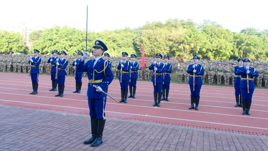 黨委書記陳良聲同志向承訓(xùn)部隊(duì)授軍訓(xùn)團(tuán)團(tuán)旗。隨著鮮艷的軍訓(xùn)團(tuán)旗緩緩升起并交接到軍訓(xùn)團(tuán)領(lǐng)導(dǎo)手中,全場(chǎng)響起了雷鳴般的掌聲和歡呼聲。這面旗幟,承載著學(xué)校對(duì)軍訓(xùn)工作的高度重視與全力支持,也凝聚了對(duì)全體新生的殷切期望和美好祝愿。