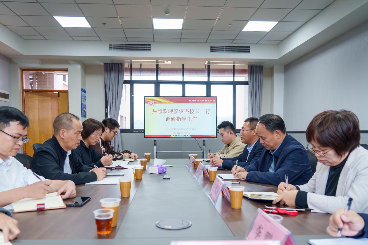 11月5日,校長(zhǎng)廖俊杰率隊(duì)到云浮校區(qū)中醫(yī)藥學(xué)院、經(jīng)管學(xué)院、現(xiàn)代生活學(xué)院、培訓(xùn)學(xué)院開展調(diào)研指導(dǎo)工作。校領(lǐng)導(dǎo)高堯來(lái)、王洪艷、李鵬,學(xué)校辦公室、教務(wù)處、人事處,以及中醫(yī)藥學(xué)院、經(jīng)管學(xué)院、現(xiàn)代生活學(xué)院、培訓(xùn)學(xué)院相關(guān)負(fù)責(zé)人參加調(diào)研。