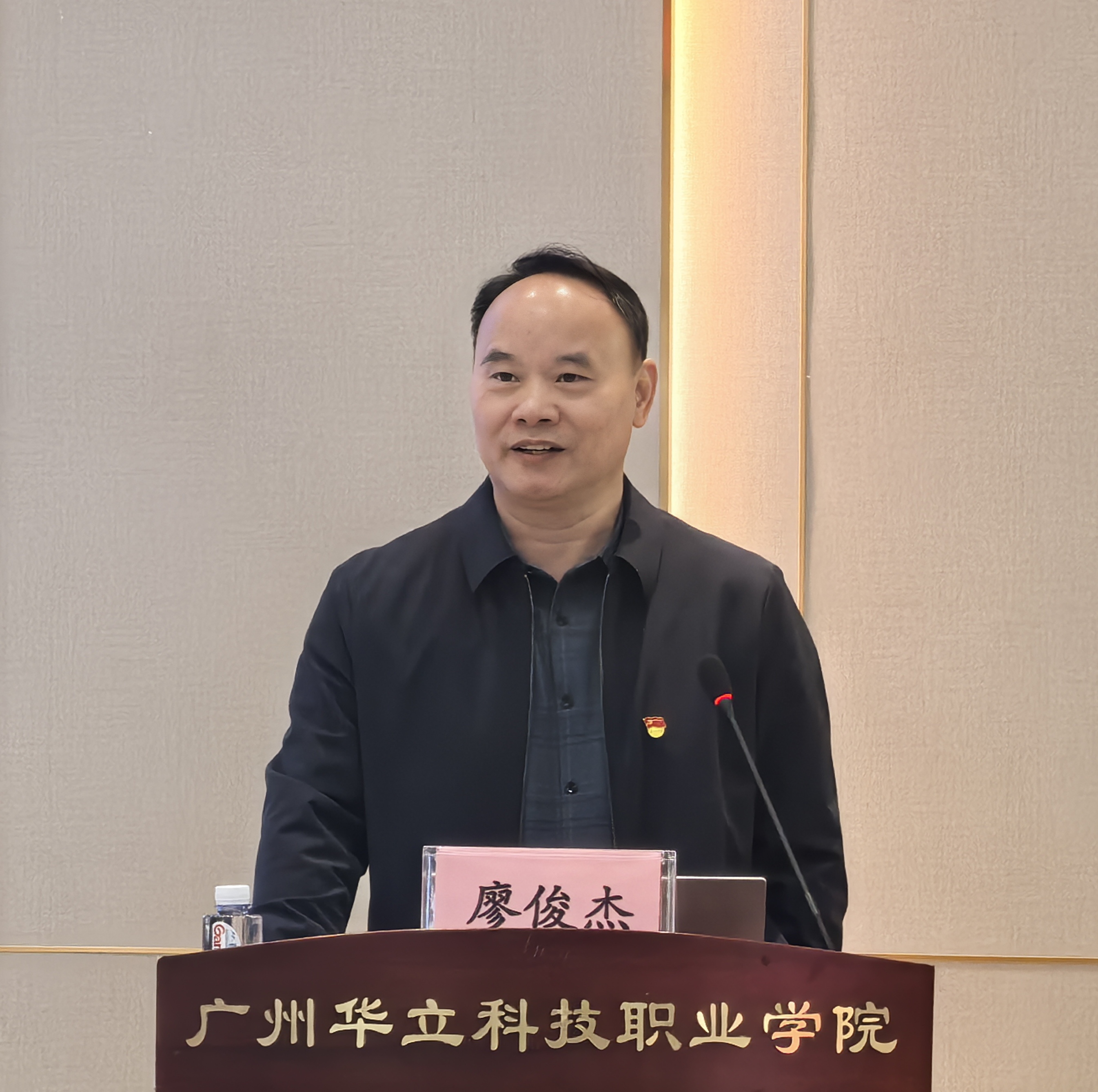 廖校長以《學(xué)習(xí)貫徹黨的二十屆四中全會精神,奮力譜寫華立職院十五五事業(yè)華章》為題,通過“學(xué)深悟透黨的二十屆四中全會精神要義、職業(yè)教育的發(fā)展歷程與思考、走民辦高職特色發(fā)展之路、做好學(xué)校事業(yè)發(fā)展‘十五五’規(guī)劃”四個層次展開專題授課。