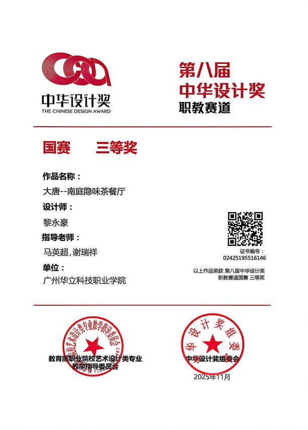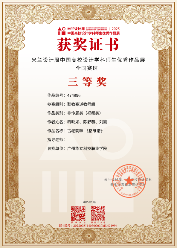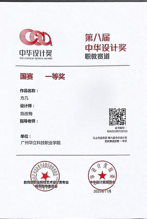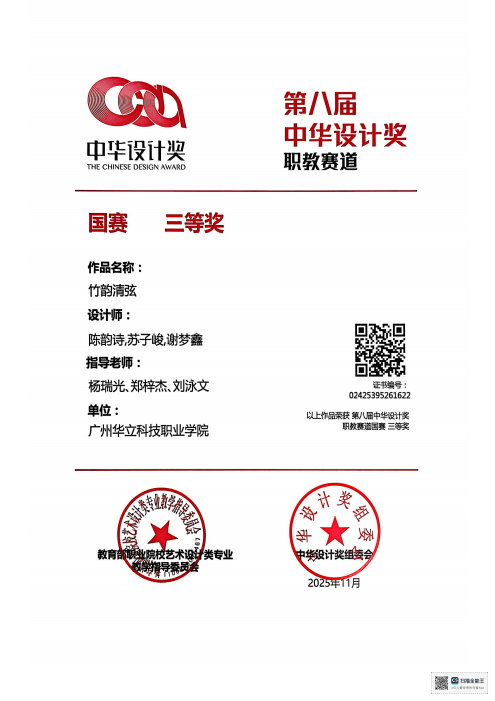 十、2025年11月,中華設(shè)計獎自2017年創(chuàng)立以來,累計吸引了全球上千所高校、機構(gòu)及設(shè)計團隊參與,始終致力于推動中國原創(chuàng)設(shè)計力量的成長與交流,已成為國內(nèi)具有重要影響力的設(shè)計賽事平臺。近日,備受矚目的第八屆中華設(shè)計獎頒獎儀式在寧波隆重舉行。本屆大賽以“智創(chuàng)未來,設(shè)計共生”為核心主題,聚焦“文化創(chuàng)新、鄉(xiāng)村振興、智能科技、數(shù)字藝術(shù)與交互”四大前沿領(lǐng)域,旨在通過智能化創(chuàng)新驅(qū)動,深度探索設(shè)計與智能科技的融合之道,尋求設(shè)計賦能生活、社會與科技和諧共生的嶄新路徑,為構(gòu)建創(chuàng)新、可持續(xù)的未來貢獻了豐富的設(shè)計智慧與解決方案。藝術(shù)與傳媒學院師生共榮獲“職教賽道”概念組國賽“一等獎”2項、“二等獎”2項、“三等獎”2項。
