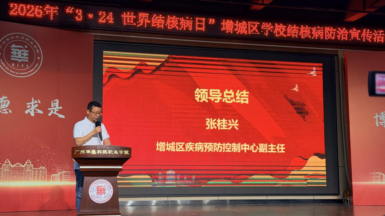 大會最后,增城區(qū)疾控中心副主任張桂興總結(jié)發(fā)言。他指出,結(jié)核病防治是一項長期而系統(tǒng)的工作,希望學(xué)校繼續(xù)加強(qiáng)宣傳教育,推動防治知識進(jìn)課堂、進(jìn)宿舍、進(jìn)頭腦,形成人人參與、群防群控的良好局面。