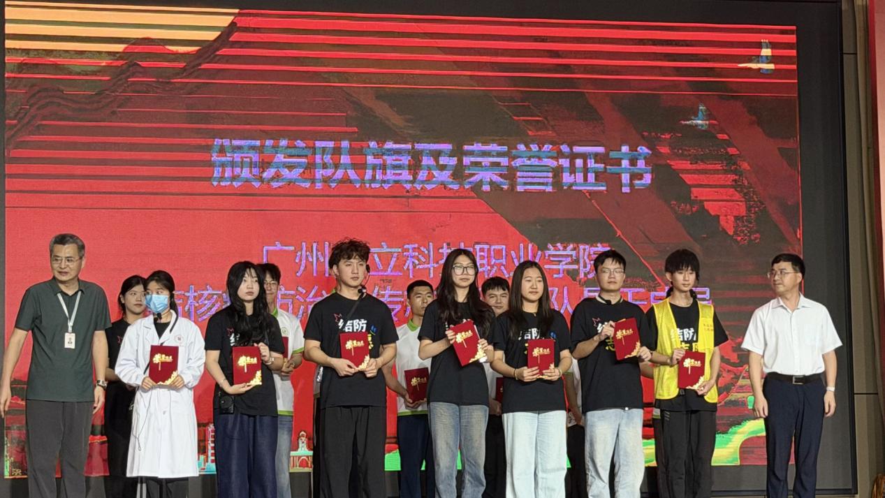 在隨后的頒發(fā)儀式上,區(qū)疾控中心領(lǐng)導(dǎo)與校領(lǐng)導(dǎo)共同為志愿服務(wù)隊頒發(fā)隊旗及志愿服務(wù)榮譽(yù)證書,并為指導(dǎo)老師張劍鋒、陳勝軍、何志斌、楊靈鼎四位指導(dǎo)老師頒發(fā)證書,充分肯定他們在結(jié)核病防治宣傳教育工作中的積極貢獻(xiàn)。隨后,區(qū)疾控中心領(lǐng)導(dǎo)向?qū)W校移交結(jié)核病防治“宣傳物料”。