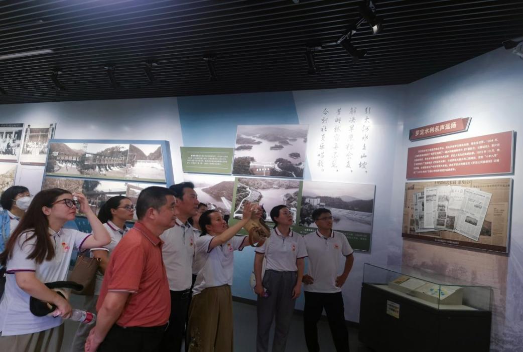 在參觀長崗坡紀念館時,全體黨員通過聽解說、看實物、觀看紀錄片和圖片等多種方式,切身感受長崗坡渡槽的宏大雄偉和建造過程的無比艱辛。