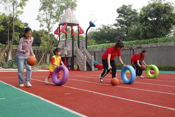 閱讀活動之后,教育學院全體志愿者積極協(xié)助華立獅寶寶幼稚園老師開展了一系列親子戶外體育活動。此次親子活動設置各類趣味運動項目,如障礙跑、合樂運西瓜(籃球)、玩轉(zhuǎn)沙包、歡樂運球比賽等,讓孩子們在運動中體驗快樂。在活動過程中,志愿者個個忙得大汗淋漓,但看到各位家長和小朋友在緊張又刺激的接力賽中玩得如此開心和盡興,他們的臉上也綻放出燦爛的笑容。