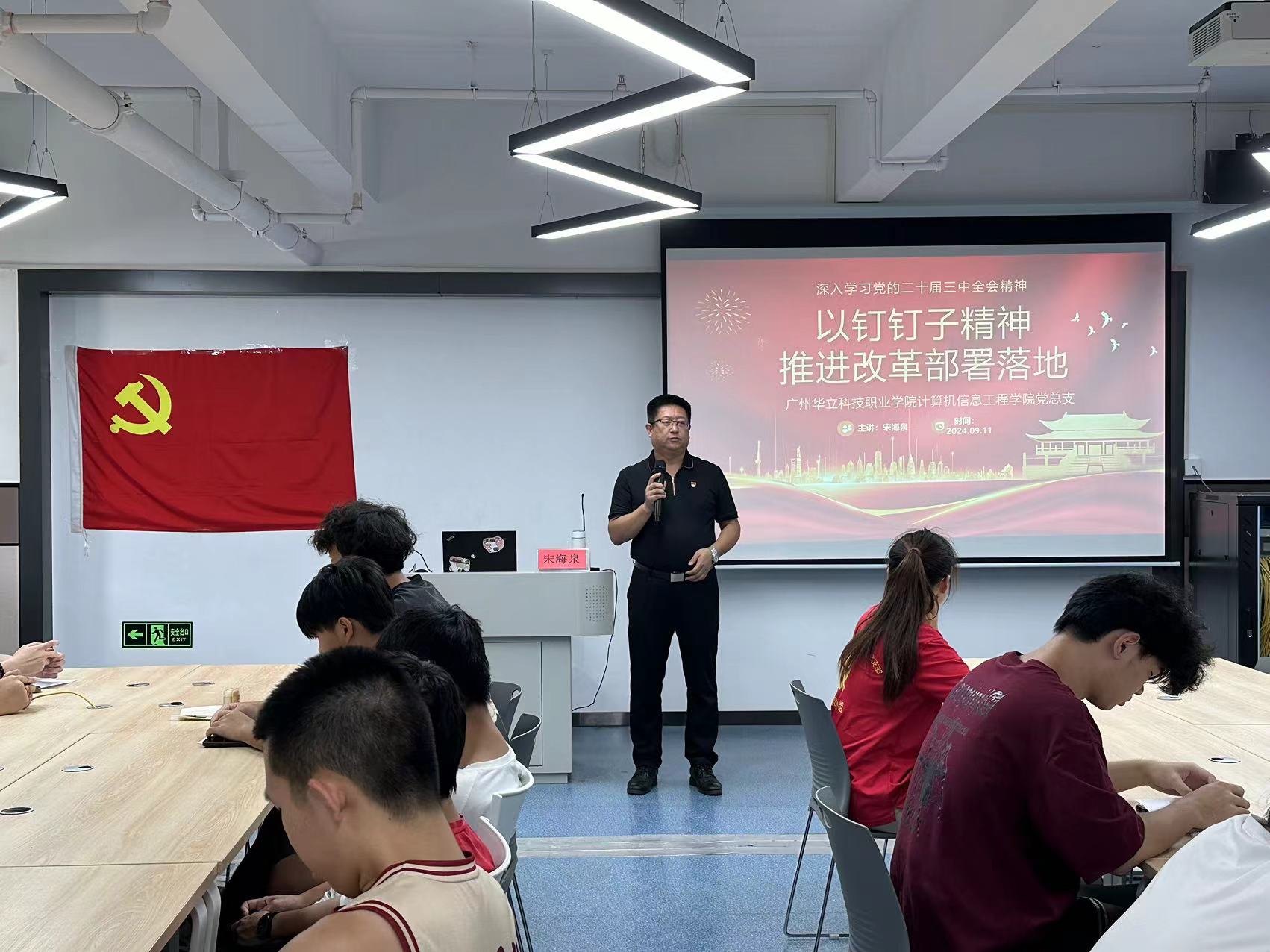 為引導(dǎo)同學(xué)們深入學(xué)習(xí)貫徹黨的二十屆三中全會精神,深刻理解以釘釘子精神推進(jìn)改革部署落地,胸懷理想,志存高遠(yuǎn),為實(shí)現(xiàn)中華民族偉大復(fù)興而努力奮斗,2024年9月11日下午,計(jì)算機(jī)信息工程學(xué)院黨總支書記、副院長宋海泉以“深入學(xué)習(xí)黨的二十屆三中全會精神—以釘釘子精神推進(jìn)改革部署落地”為主題為2023級學(xué)生干部和學(xué)生代表講授“思政第一課”。