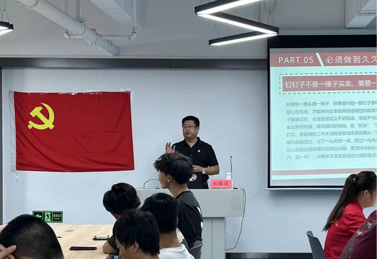 最后,宋海泉引導(dǎo)同學(xué)們深刻領(lǐng)會把握黨的二十屆三中全會精神,希望同學(xué)們在工作和學(xué)習(xí)中,要把牢正確方向、講究方式方法、發(fā)揚(yáng)實(shí)干精神,以釘釘子精神抓好各項(xiàng)任務(wù)落實(shí),為推進(jìn)中國式現(xiàn)代化貢獻(xiàn)力量!