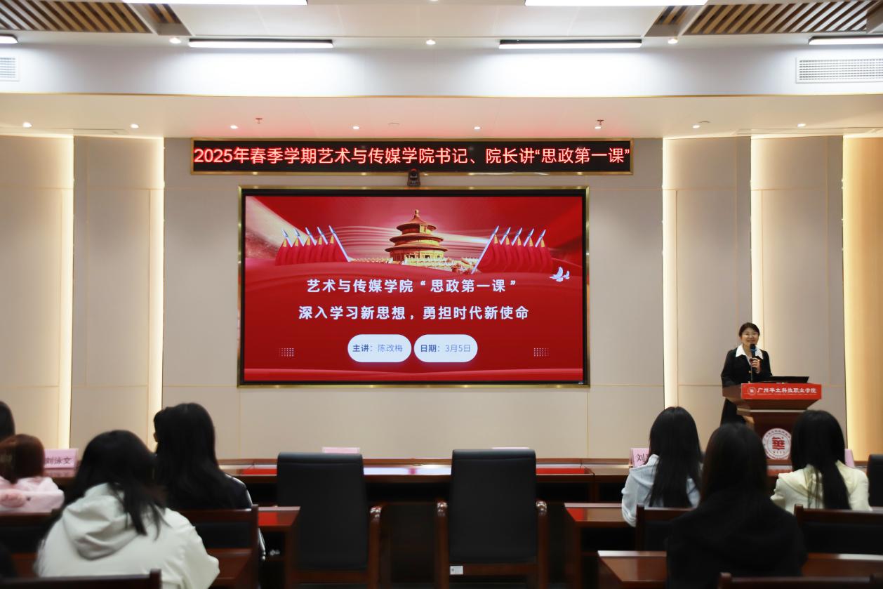 藝術與傳媒學院黨總支書記陳改梅以“深入學習新思想,勇?lián)鷷r代新使命”為題,結(jié)合AI技術革新、元宇宙文化傳播、“國潮熱”興起等熱點話題,強調(diào)新時代青年需將專業(yè)學習與國家戰(zhàn)略緊密結(jié)合。陳書記提出“以文化自信為底色,以技術創(chuàng)新為翼”,鼓勵學生用數(shù)字藝術講好中國故事,創(chuàng)作兼具思想深度與人文溫度的藝術作品。