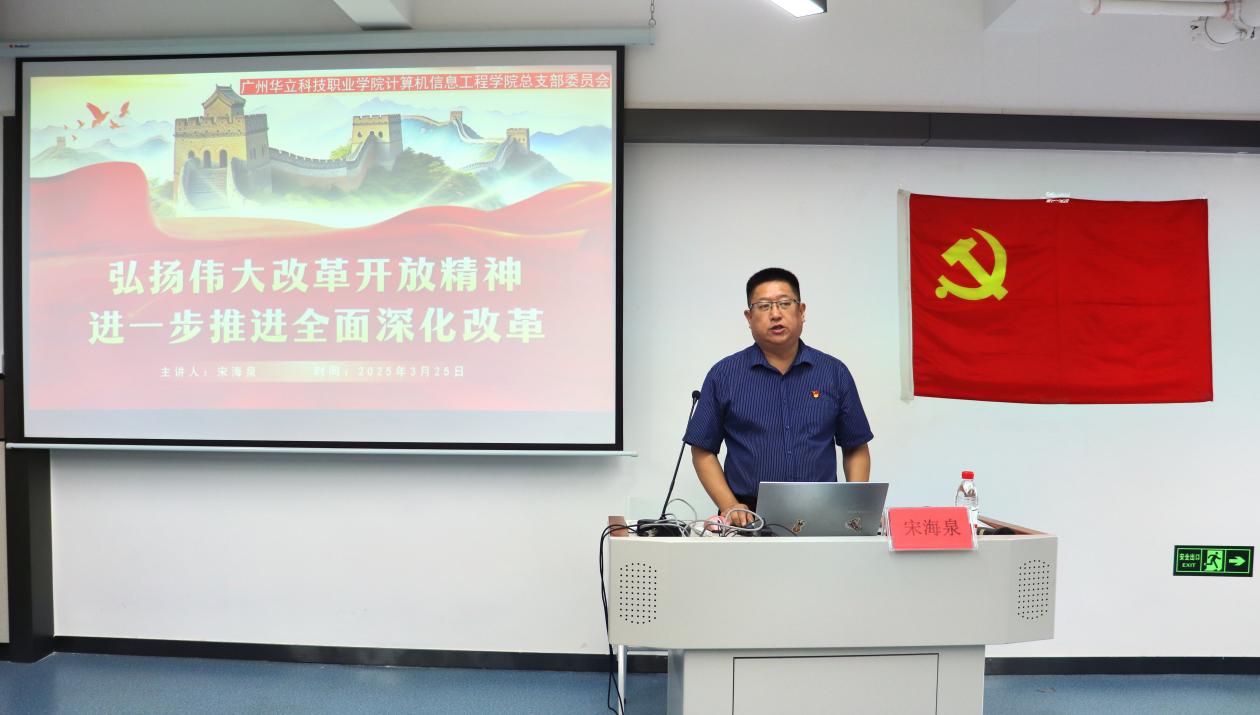 計算機信息工程學(xué)院黨總支書記宋海泉以“弘揚偉大改革開放精神 進一步推進全面深化改革”為題,從“躬行實踐,篳路藍縷”、“凝心聚力,踔厲奮發(fā)”、“不忘初心,牢記使命”三個方面為同學(xué)們闡釋了改革開放是黨在新時代條件下帶領(lǐng)人民進行的新的偉大革命,是當(dāng)代中國最鮮明的特色,是黨在新的歷史時期最鮮明的旗幟。宋書記指出,大力弘揚偉大改革開放精神是我們解決發(fā)展中的問題和應(yīng)對前進道路上的風(fēng)險挑戰(zhàn)的強大動力,同時也能為中國式現(xiàn)代化注入更為主動、更為強大的精神力量。