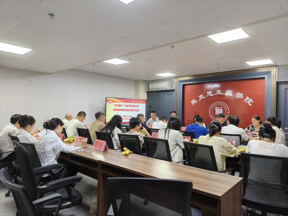 為學習弘揚教育家精神,培育更優(yōu)良的師德師風,9月10日下午,馬克思主義學院在G1-314會議室舉行了慶祝第41個教師節(jié)座談會暨師德師風承諾書簽訂儀式。