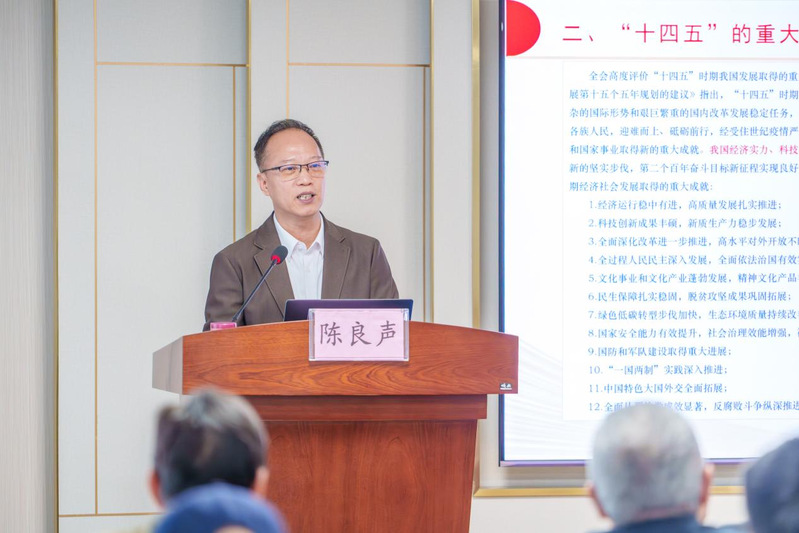 報(bào)告會(huì)上,陳良聲書記以“深入學(xué)習(xí)貫徹二十屆四中全會(huì)精神,全力推進(jìn)華立職院高質(zhì)量發(fā)展”為題,圍繞學(xué)習(xí)貫徹習(xí)近平總書記在黨的二十屆四中全會(huì)上的重要講話精神和全會(huì)《建議》,介紹了黨的二十屆四中全會(huì)基本情況,用詳實(shí)數(shù)據(jù)和豐富內(nèi)容闡述了“十四五”時(shí)期我國(guó)經(jīng)濟(jì)實(shí)力、科技實(shí)力、綜合國(guó)力躍上新臺(tái)階,在科技、教育、人才、國(guó)防建設(shè)等方面取得歷史性重大成就,對(duì)“十五五”時(shí)期在基本實(shí)現(xiàn)社會(huì)主義現(xiàn)代化進(jìn)程中的重要地位、“十五五”時(shí)期經(jīng)濟(jì)社會(huì)發(fā)展的指導(dǎo)思想、重大原則和主要目標(biāo),以及“十五五”時(shí)期的戰(zhàn)略任務(wù)和重大舉措等進(jìn)行了全面系統(tǒng)、深入透徹的宣講解讀。