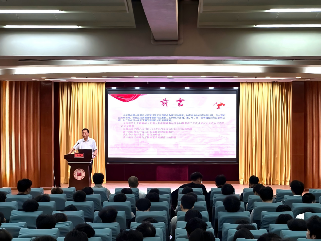 高堯來(lái)副書(shū)記圍繞“回顧歷史了解中國(guó)發(fā)展成就、中國(guó)經(jīng)濟(jì)快速發(fā)展的成功密碼、認(rèn)清形勢(shì)站在歷史新起點(diǎn)、奮發(fā)圖強(qiáng)爭(zhēng)做民族脊梁”等四個(gè)方面帶領(lǐng)同學(xué)們回顧了中國(guó)革命與改革開(kāi)放歷史:從舊中國(guó)的一窮二白到新中國(guó)GDP超越日本成為世界第二大經(jīng)濟(jì)體;從開(kāi)國(guó)初的百?gòu)U待興到新中國(guó)的華為遙遙領(lǐng)先、太空探索的輝煌成就;再到國(guó)防與環(huán)境建設(shè)的巨大改善,全方位展示了改革開(kāi)放以來(lái)取得的偉大成就。隨后,他深刻闡釋了中國(guó)經(jīng)濟(jì)高質(zhì)量發(fā)展的成功密碼,指出歷史經(jīng)驗(yàn)已經(jīng)并將繼續(xù)證明,沒(méi)有中國(guó)共產(chǎn)黨的領(lǐng)導(dǎo),民族復(fù)興必然是空想,是歷史選擇了中國(guó)共產(chǎn)黨。面對(duì)百年未有之大變局,他向青年學(xué)子發(fā)出“奮發(fā)圖強(qiáng),爭(zhēng)做民族脊梁”的號(hào)召并提出了兩點(diǎn)殷切期望:一是練就過(guò)硬本領(lǐng),要認(rèn)真學(xué)好專(zhuān)業(yè)知識(shí)與技能,更要勇于創(chuàng)新創(chuàng)造,將創(chuàng)新理念深度融入學(xué)習(xí)之中。二是弘揚(yáng)奮斗精神,要保持艱苦奮斗的優(yōu)良傳統(tǒng),做到不怕苦、能吃苦、甘吃苦,以踏實(shí)肯干的作風(fēng),在新時(shí)代的征程中貢獻(xiàn)青春力量。