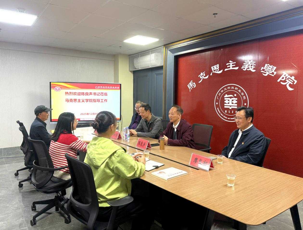 2025年12月9日,學校黨委書記陳良聲與結對共建單位廣東機電職業(yè)技術學院思政課教學專家季士強博士一行,蒞臨馬克思主義學院調研指導工作。學校黨委辦公室主任梁德君、校黨委組織部副部長陳曉薇、馬克思主義學院院長廖良初、副院長伍揆祁、院長助理唐濤等參加。會議由廖良初院長主持。