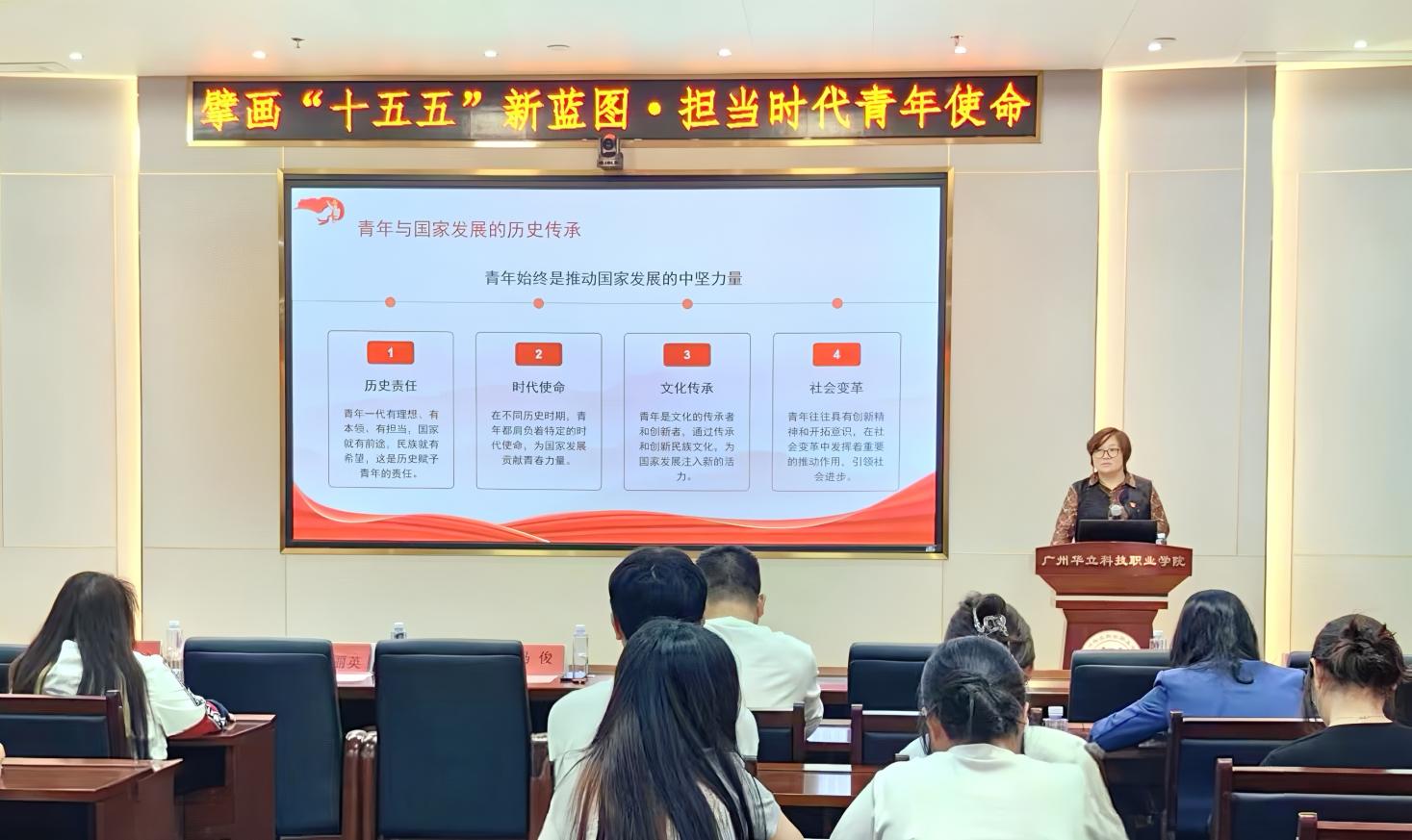 為引導(dǎo)青年學(xué)子讀懂國家發(fā)展大勢,找準(zhǔn)職業(yè)定位,提振學(xué)習(xí)成才的激情和動(dòng)力,以實(shí)干擔(dān)當(dāng)奔赴新征程,3月18日,在圖書館104會議室,學(xué)校常務(wù)副校長馬俊教授以“擘畫‘十五五’新藍(lán)圖·擔(dān)當(dāng)時(shí)代青年使命”為主題,為藝術(shù)與傳媒學(xué)院師生帶來一堂有深度、有溫度、有力度的思政第一課,學(xué)院黨總支書記陳改梅、院長朱君、黨總支專職副書記劉嘉怡參加聽課。學(xué)生代表齊聚課堂,認(rèn)真聆聽、深入思考,現(xiàn)場氛圍莊重而熱烈。