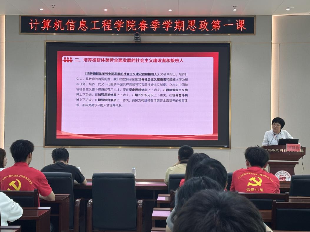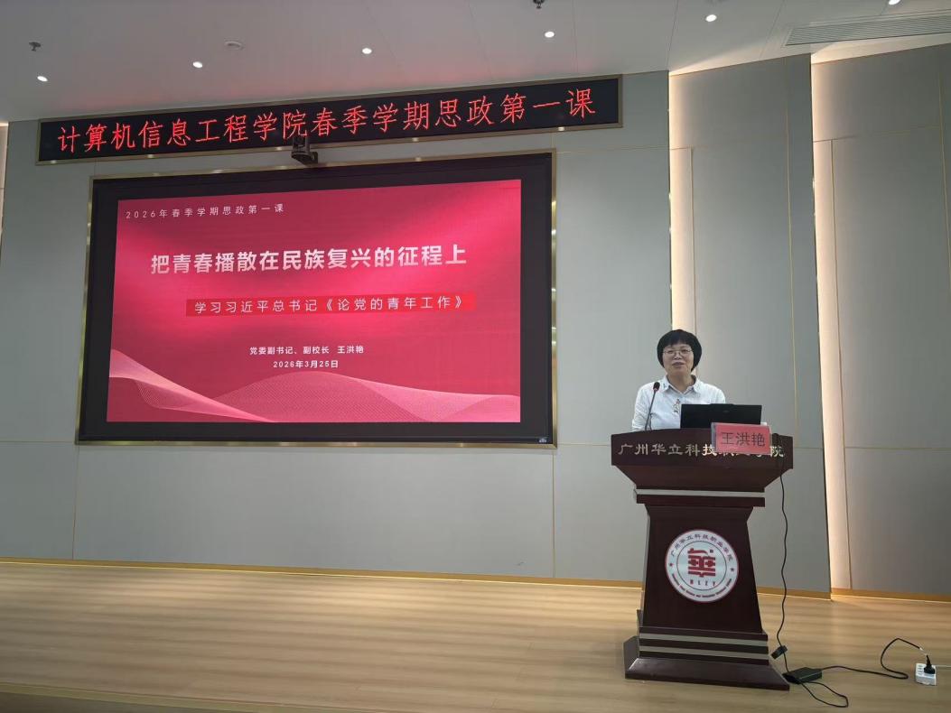 為深入學(xué)習(xí)貫徹習(xí)近平總書記關(guān)于青年工作的重要思想,引導(dǎo)廣大青年堅(jiān)定理想信念、勇?lián)鷷r(shí)代使命,3月25日下午,在圖書館104會(huì)議室,學(xué)校黨委副書記、副校長王洪艷以“把青春播撒在民族復(fù)興的征程上”為主題,為計(jì)算機(jī)信息工程學(xué)院師生帶來一堂主題鮮明、內(nèi)涵豐富的思政第一課。