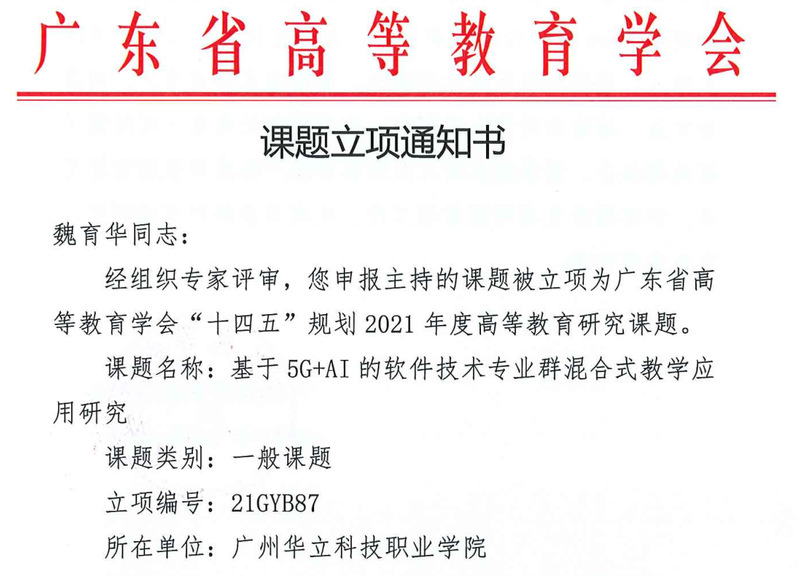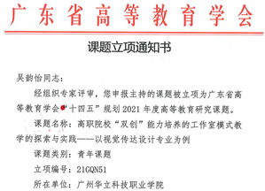 經(jīng)各單位申報(bào)、資格審查、專家評審,并結(jié)合全省申報(bào)總體情況,廣東省高等教育學(xué)會(huì)“十四五”規(guī)劃2021年度高等教育研究課題擬立項(xiàng)303項(xiàng),其中重點(diǎn)課題11項(xiàng)、一般課題196項(xiàng)、青年課題96項(xiàng)。我校共申報(bào)8項(xiàng),其中《基于“5G+AI”的“軟件技術(shù)專業(yè)群”混合式教學(xué)應(yīng)用研究》等四個(gè)課題獲一般課題立項(xiàng),《高職院?!半p創(chuàng)”能力培養(yǎng)的工作室模式教學(xué)的探索與實(shí)踐——以視覺傳達(dá)設(shè)計(jì)專業(yè)為例》等三個(gè)課題獲青年課題立項(xiàng),特此祝賀。
