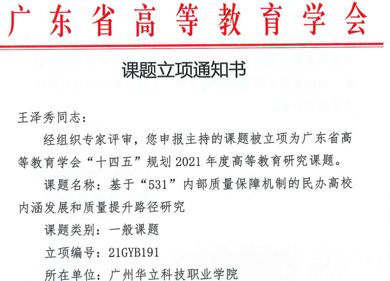 為深入貫徹黨的教育方針和習(xí)近平總書記關(guān)于教育的重要論述,助力高等教育高質(zhì)量發(fā)展,根據(jù)《廣東省高等教育學(xué)會(huì)事業(yè)發(fā)展“十四五”規(guī)劃》《廣東省高等教育學(xué)會(huì)2021年工作要點(diǎn)》《廣東省高等教育學(xué)會(huì)課題管理制度》,廣東省高等教育學(xué)會(huì)啟動(dòng)了2021年度課題申報(bào)工作。