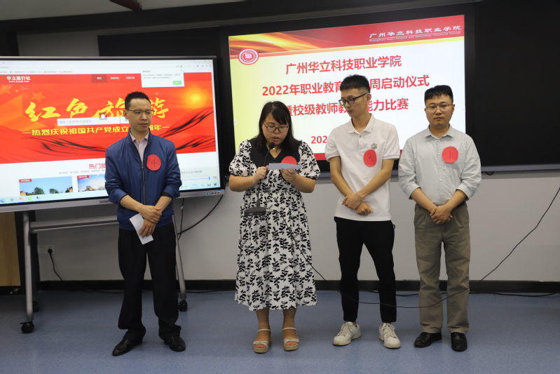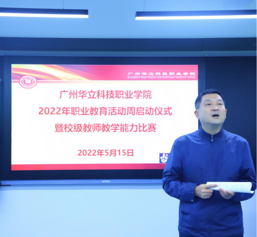 2022年5月15日,廣州華立科技職業(yè)學院舉行2022年職業(yè)教育活動周啟動儀式暨校級教師教學能力比賽順利舉行。我校易健民校長、馬俊常務副校長以及校外專家陳顯強教授等出席啟動儀式,并擔任比賽評審。我校教務處處長李衛(wèi)國主持活動。