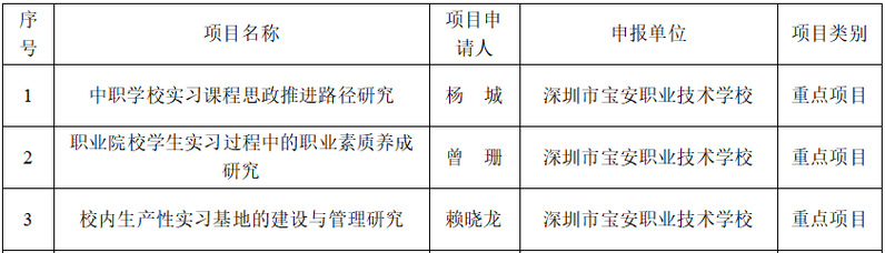 廣東省職業(yè)院校實(shí)習(xí)工作指導(dǎo)委員會2022年12月啟動了教育教學(xué)改革項(xiàng)目申報(bào)工作,經(jīng)學(xué)校推薦、形式審查、專家評審等程序,現(xiàn)予以公示。根據(jù)公示結(jié)果,我校陳改梅、黃冠霖、梁慧貞三位老師的課題獲得立項(xiàng)。