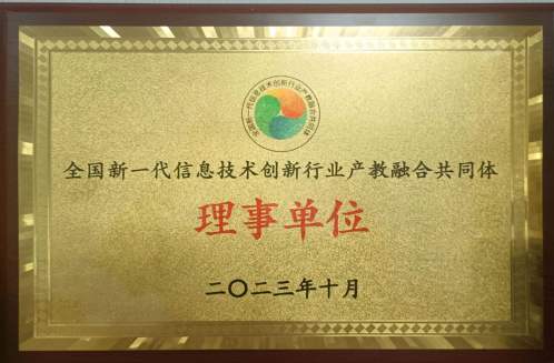 全國新一代信息技術(shù)創(chuàng)新行業(yè)產(chǎn)教融合共同體理事單位-牌匾