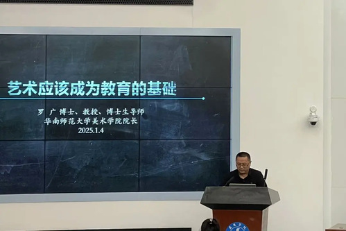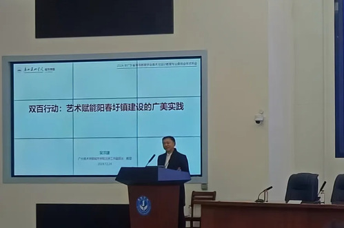 隨后,美術(shù)與設(shè)計教育專委會理事長、廣東美術(shù)學(xué)院副校長蔡擁華作了工作報告。他回顧了過去一年的工作成果,特別提到了習(xí)近平新時代中國特色社會主義思想的指導(dǎo)作用,以及十二屆三中全會的精神指引。蔡擁華強調(diào),新時代美育教育不僅要在高校內(nèi)部深入貫徹社會主義核心價值觀,還要通過各類大賽和實踐活動,弘揚社會主義先進(jìn)文化,增強學(xué)生的文化自信。他還介紹了“新時代新生活新美學(xué)”系列活動,展示了廣東高校在美育領(lǐng)域的最新成果。