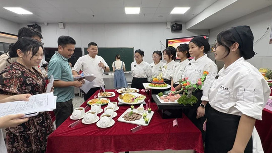 陳顯強(qiáng)副校長在致辭中高度肯定了此次大賽的成果:這場賽事不僅展現(xiàn)了同學(xué)們扎實(shí)的專業(yè)功底,更體現(xiàn)了職業(yè)教育'德技并修'的育人理念。希望同學(xué)們以此次比賽為新起點(diǎn),在傳承粵菜文化的道路上不斷精進(jìn),為餐飲行業(yè)發(fā)展貢獻(xiàn)青春力量。