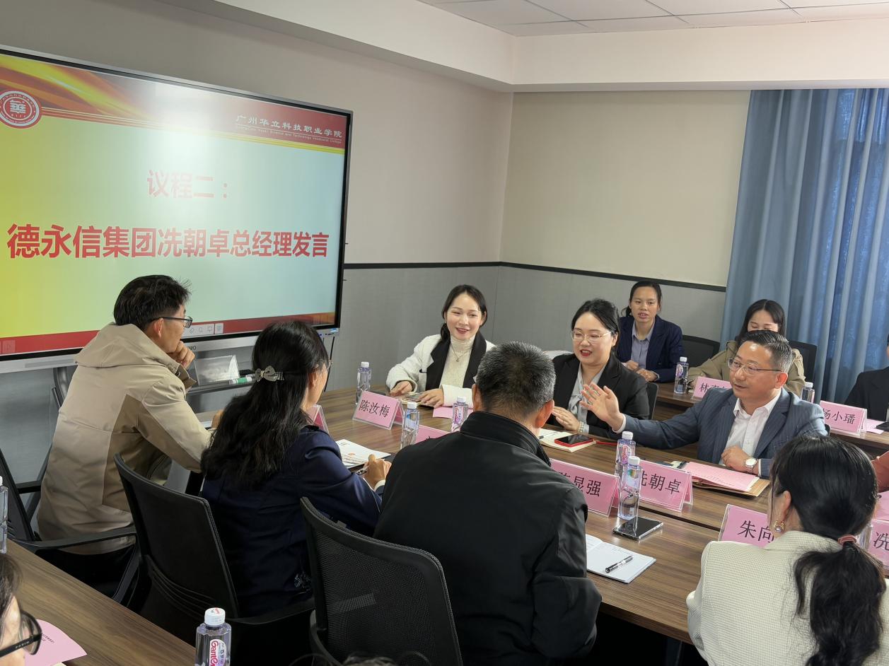 2025年2月27日,深圳市德永信財(cái)稅集團(tuán)有限公司總經(jīng)理冼朝卓先生率領(lǐng)集團(tuán)下各子公司高管們一行蒞臨廣州華立科技職業(yè)學(xué)院經(jīng)濟(jì)管理學(xué)院參加“共育匠才 ‘職’ 通未來” 產(chǎn)教融合洽談會(huì)。學(xué)校副校長(zhǎng)陳顯強(qiáng)教授親臨會(huì)場(chǎng),陪同參會(huì)的還有教務(wù)處處長(zhǎng)王澤秀及產(chǎn)教融合辦韋建林主任。