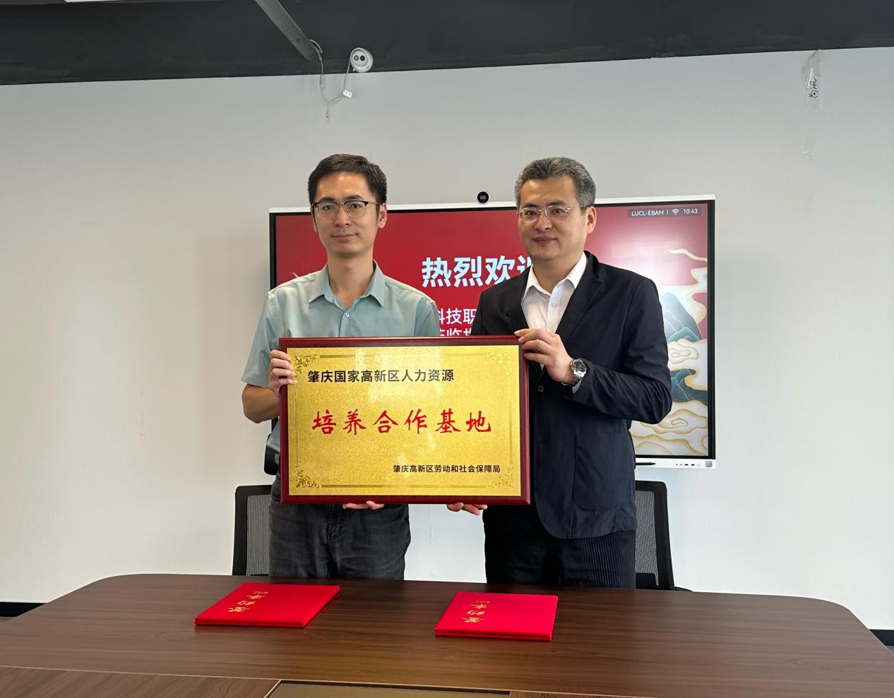 在校政企合作交流會上,肇慶高新區(qū)勞動社保局副局長柴子龍介紹了肇慶高新區(qū)產(chǎn)業(yè)布局及人力資源需求情況,張校助介紹了我校辦學(xué)定位、專業(yè)設(shè)置以及2025年學(xué)生就業(yè)和實習(xí)工作情況。經(jīng)過深入交流和探討,雙方就開展人力資源供需對接、訂單式人才培養(yǎng)等事宜簽訂了合作框架協(xié)議,肇慶高新區(qū)勞動社保局授予我校“肇慶國家高新區(qū)人力資源培養(yǎng)合作基地”牌匾,為政校企未來的深度合作奠定了基礎(chǔ)。