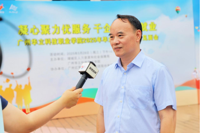 廖俊杰校長在招聘現(xiàn)場接受增城融媒體記者采訪時(shí)表示我校本次招聘會是深入貫徹落實(shí)國務(wù)院、教育部、廣東省教育廳有關(guān)做好2025屆高校畢業(yè)生促就業(yè)攻堅(jiān)期系列行動之一。同時(shí)非常感謝當(dāng)?shù)卣驮龀菂^(qū)人力資源和社會保障局對學(xué)校學(xué)生就業(yè)工作的大力支持。隨后介紹了參加招聘會的150家企業(yè)涵蓋的包括機(jī)械、信息類、管理、藝術(shù),中醫(yī),藥學(xué)等各個(gè)領(lǐng)域,指出這些領(lǐng)域跟學(xué)校的辦學(xué)定位和專業(yè)設(shè)置密切相關(guān)。最后,廖校長介紹了學(xué)校今年在保障學(xué)生就業(yè)方面采取了一系列相關(guān)措施:一是在教育方面,我們設(shè)置了《職業(yè)規(guī)劃與就業(yè)指導(dǎo)》與《創(chuàng)新創(chuàng)業(yè)》等相關(guān)課程,課程從大一開始授課以幫助學(xué)生掌握實(shí)習(xí)規(guī)劃書、創(chuàng)業(yè)計(jì)劃書的撰寫和面試禮儀等方面的技能。二是在就業(yè)的環(huán)節(jié),就業(yè)指導(dǎo)部門和就業(yè)一線的專業(yè)老師會對畢業(yè)生進(jìn)行專門指導(dǎo)。三是開展困難畢業(yè)生一對一幫扶和組織困難畢業(yè)生參加教育部主導(dǎo)的“中央專項(xiàng)彩票公益金宏志助航計(jì)劃”全國高校畢業(yè)生就業(yè)能力培訓(xùn)等活動,以滿足畢業(yè)生多元化的就業(yè)需求。